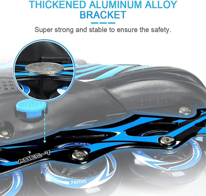 - đăErweiterbar LĂ€ngeăMit einem eleganten und auffĂ€lligen Knopf an der Seite der Inline-Skates können Sie die LĂ€nge der Outdoor-Inline-Skates.Um die Grösse anzupassen, damit diese Skates lĂ€nger als eine Saison verwendet werden.Sie können die