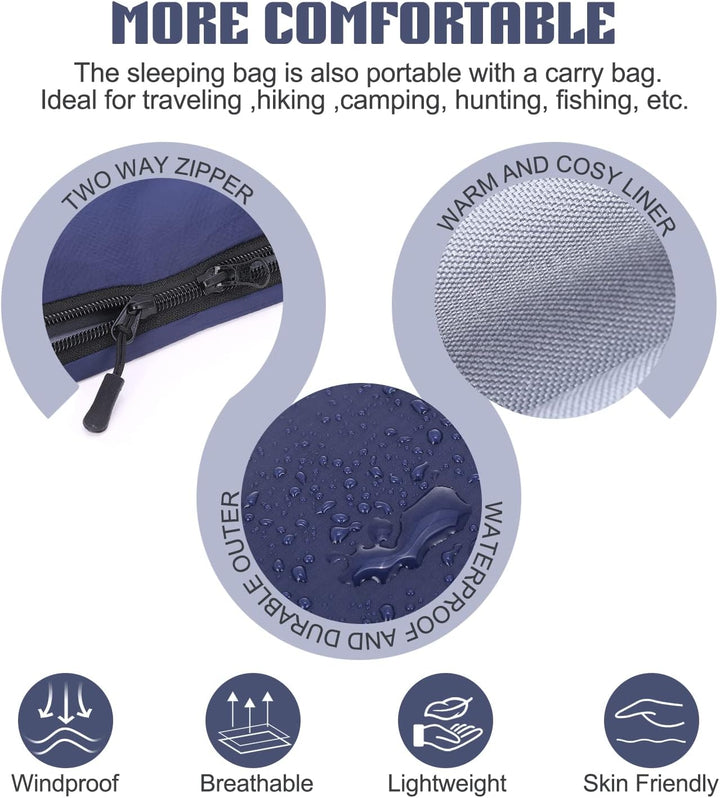 - GEEIGNET FÜR ALLE JAHRESZEITEN:: Temperaturbewertung: 9 ° C (Grenzwert) ~ 15 ° C (bequem). Ausgestattet mit 4 Kompressions-Gürteltaschen lässt sich der Schlafsack auf die kleinste Grösse zusammendrücken.Sie können diesen Schlafsack beim Camping,