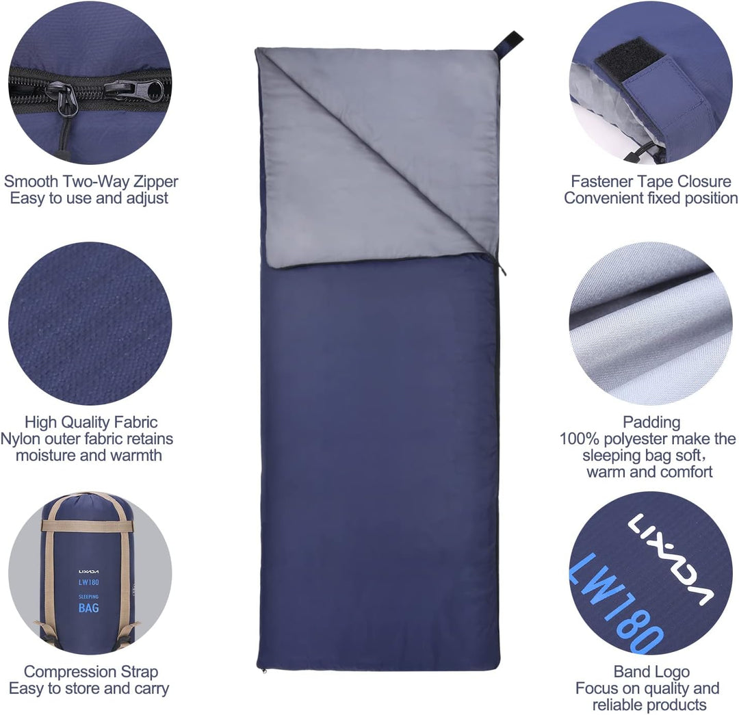 - BEQUEM ZU TRAGEN: Der Lixada Schlafsack ist ein ultraleichter Reiseschlafsack. Obwohl der mitgelieferte Kompressionsbeutel eine grosse Ablagefläche von 190 x 75 cm hat, beträgt die voll komprimierte Grösse nur 29 x 12 cm und das Gewicht nur 680 Gramm.