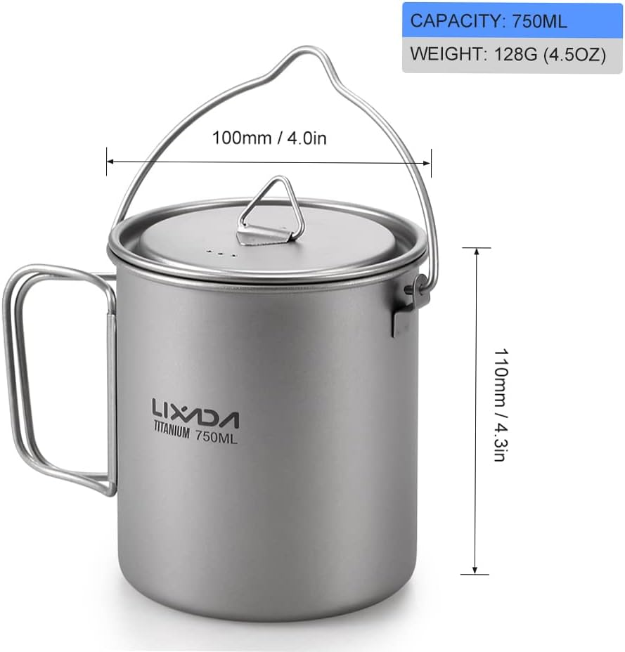 - đȘă2 in 1 Designă: Es kann als Topf oder Wasserbecher mit Deckel und hĂ€ngendem Design verwendet werden, was sehr bequem zu verwenden und zu lagern ist. Kann leicht in einem Rucksack verstaut werden. Es kann mit Gas-, Alkohol- oder Holzofen oder