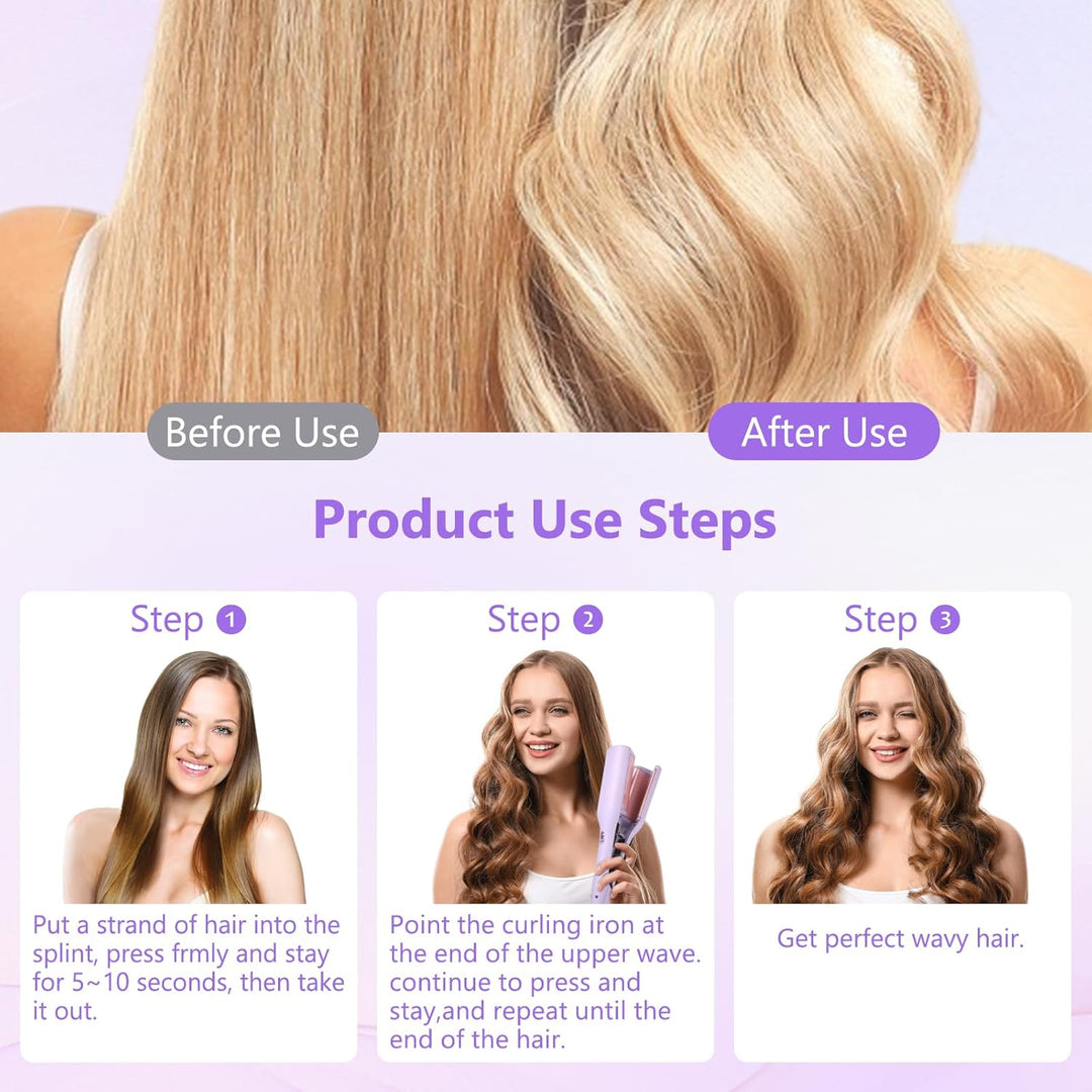 - 30 Sekunden Schnelles Aufheizen: Unser professioneller Lockenstab hat ein S-förmiges, gebogenes Design mit 2 Zylindern. Klemmen Sie Ihr Haar fest und drücken Sie es sanft an. Sie können in 30 Sekunden problemlos zwei perfekte 32-mm-Rollen erstellen.