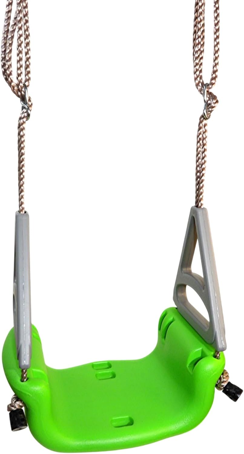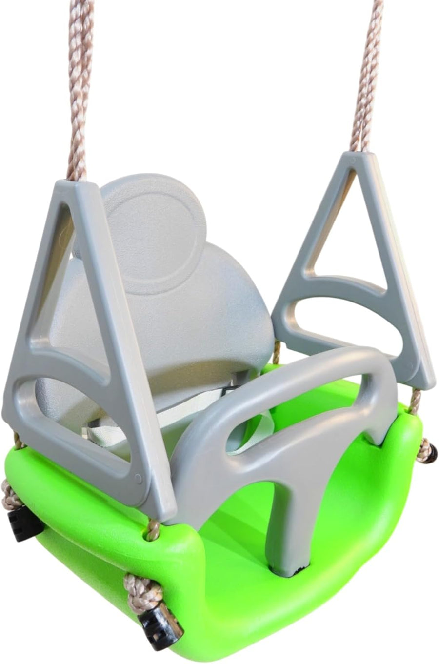 - 3 in 1 Schaukel von 12 Monaten bis ca. 12 Jahren. Frontbügel und Rückenlehne einfach abnehmbar, bis 35 kg geeignet. Inklusive Gurt Haltestahlring und Verstellöse. Masse: ca. 46 x 40 x 30 cm. Höhenverstellbares Seil Ø 10 mm, Länge: ca. 1,70 m.
