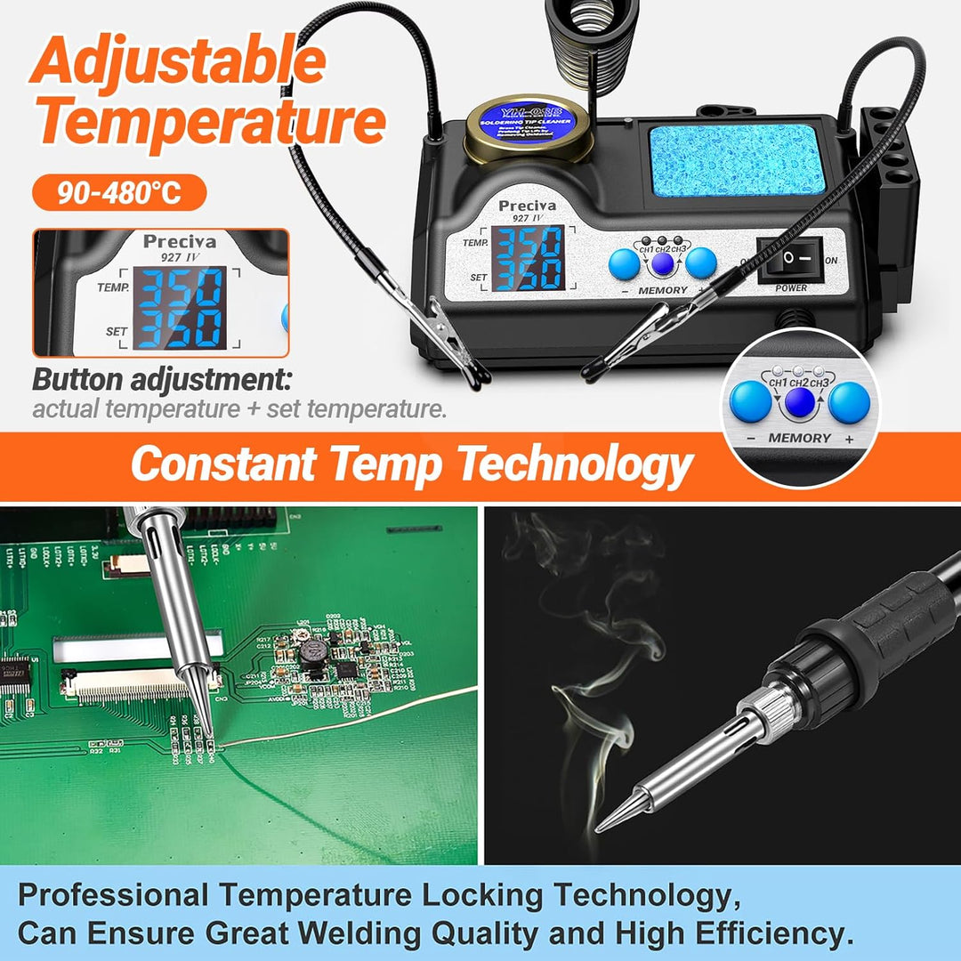 - 【Effizienter Lötkolben】-- 130W Lötstation, schnelle Heizung Keramikkern, kann 300℃ in 15 Sekunden erreichen. Vier Kühlöffnungen sorgen für eine schnelle Wärmeableitung. Mit dem schnellen Heiz- und Kühlsystem kann die Preciva 927IV