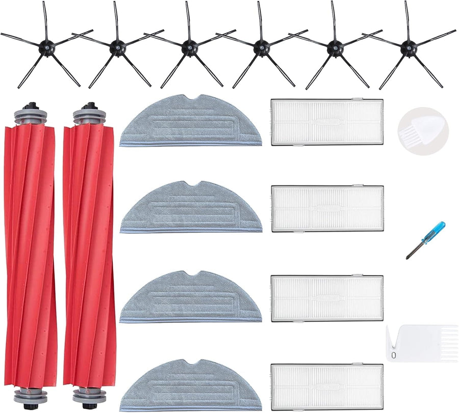 - 2 x Hauptbürste 4 x Filter 6 x Seitenbürsten 4 x Wischtüche 1 x Bürstenreinigungswerkzeug 1 x Schraubendreher