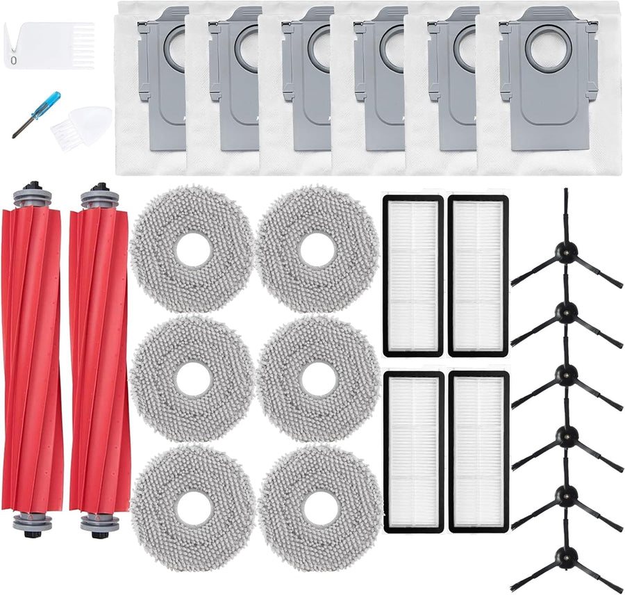 - Lieferumfang: 2 Hauptbürsten, 4 HEPA Filter, 6 Wischtücher, 6 Seitenbürsten, 6 Staubbeutel, 1 Reinigungsbürste