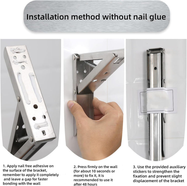 - [STURDY ,SIMPLE]: Wenn die zusammenklappbaren Regalhalterungen aus Stahl zur Befestigung an der Wand verwendet werden, kann der Tisch reibungslos stehen und das Design mit abgerundeten Kanten verhindert versehentliche Verletzungen.
