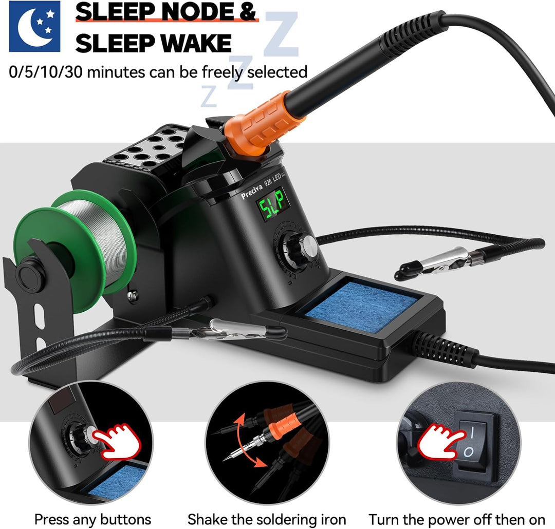- [Lötkolben Set Ruhemodus] Im Ruhezustand kühlt der Lötkolben automatisch in einen Ruhezustand ab (0/5/10/30 Minuten wählbar). Dies verhindert die Oxidation der Lötkolbenspitze und verlängert die Lebensdauer des Gerätes.