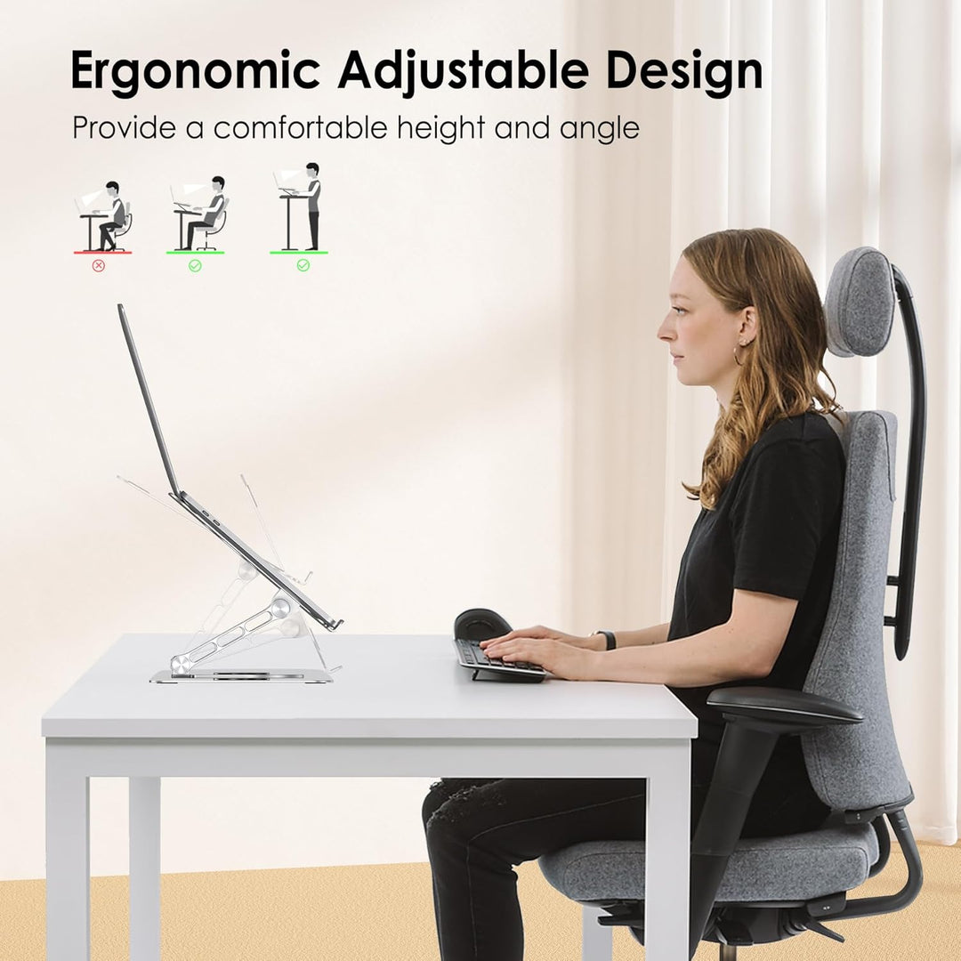 - 【Ergonomisches Design】 Mit dem ergonomischen Design hilft dieser Laptopständer Ihre Haltung zu verbessern, indem er den Ständer auf einen geeigneten Winkel einstellen und Ihren Laptop auf Augenhöhe anhebt. Es kann die Belastung Ihres Nackens und