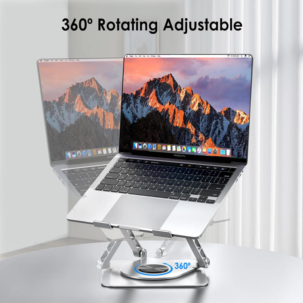 - 【360-Grad-Drehung】Der Laptopständer verfügt über eine um 360° drehbare Basis, mit der Sie Ihren Laptop in jeden Winkel drehen können, um optimale Sicht und ergonomischen Komfort zu erzielen. Dieser Laptopständer ist perfekt für Gruppenprojekte