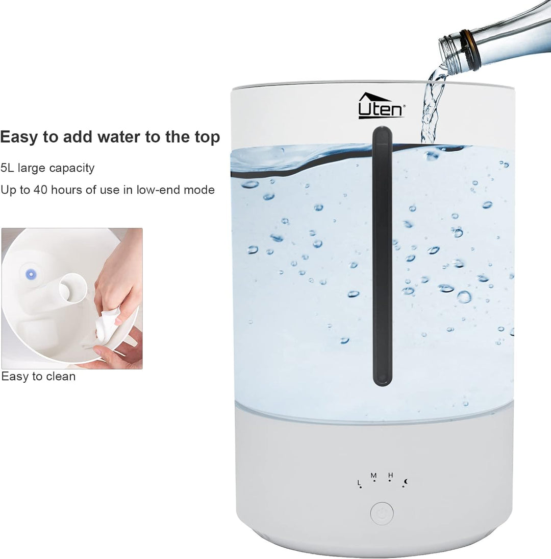 - 🌿【Bequemes Design & gesunde Wahl】:Befeuchten der Raumluft auf diesen Luftbefeuchter 5L, um das Wohnbefinden zu erhöhen. Dieser Luftbefeuchter bietet 3 Modell und Schlafmodus, effizienter Nebelausgabe ist 100/200/300ml/hr, und er bietet 24 Watt