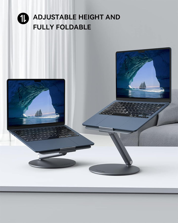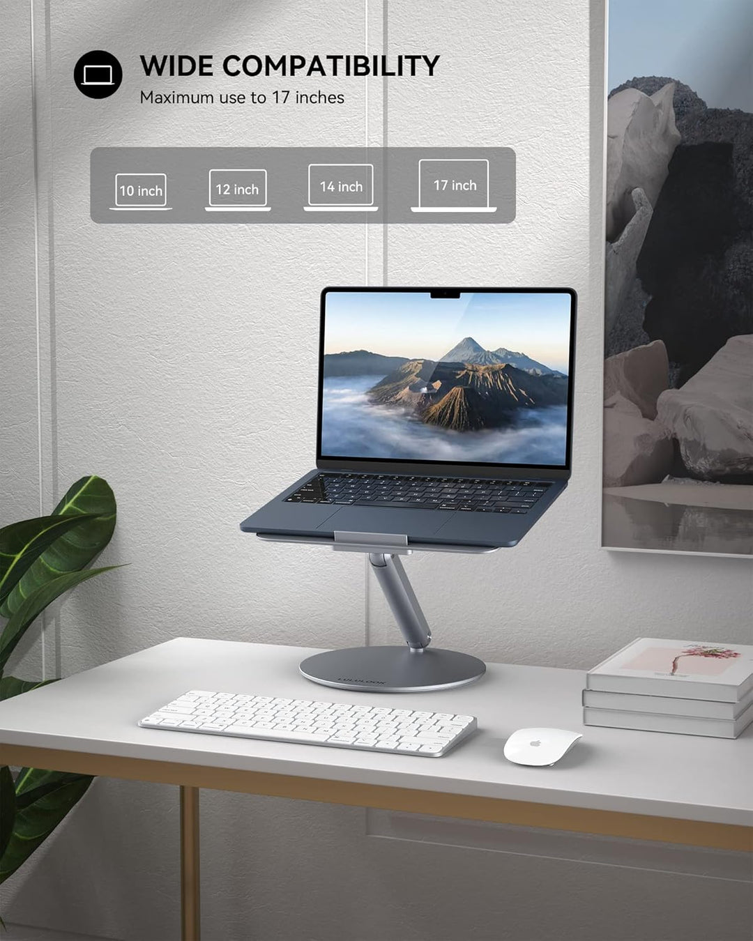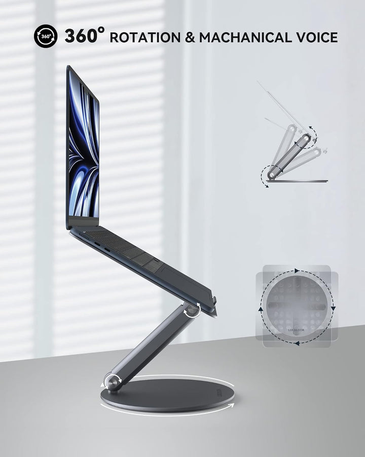 - 💻【Interaktives Design】Unser Laptopständer sticht raus mit ein 360° rotierend unsichtbar kreisförmige basis und ein mechanisch arm. Hergestellt mit akustischem dämpfungs material, der ständer reagiert auf jede drehung reaktionsschnell,