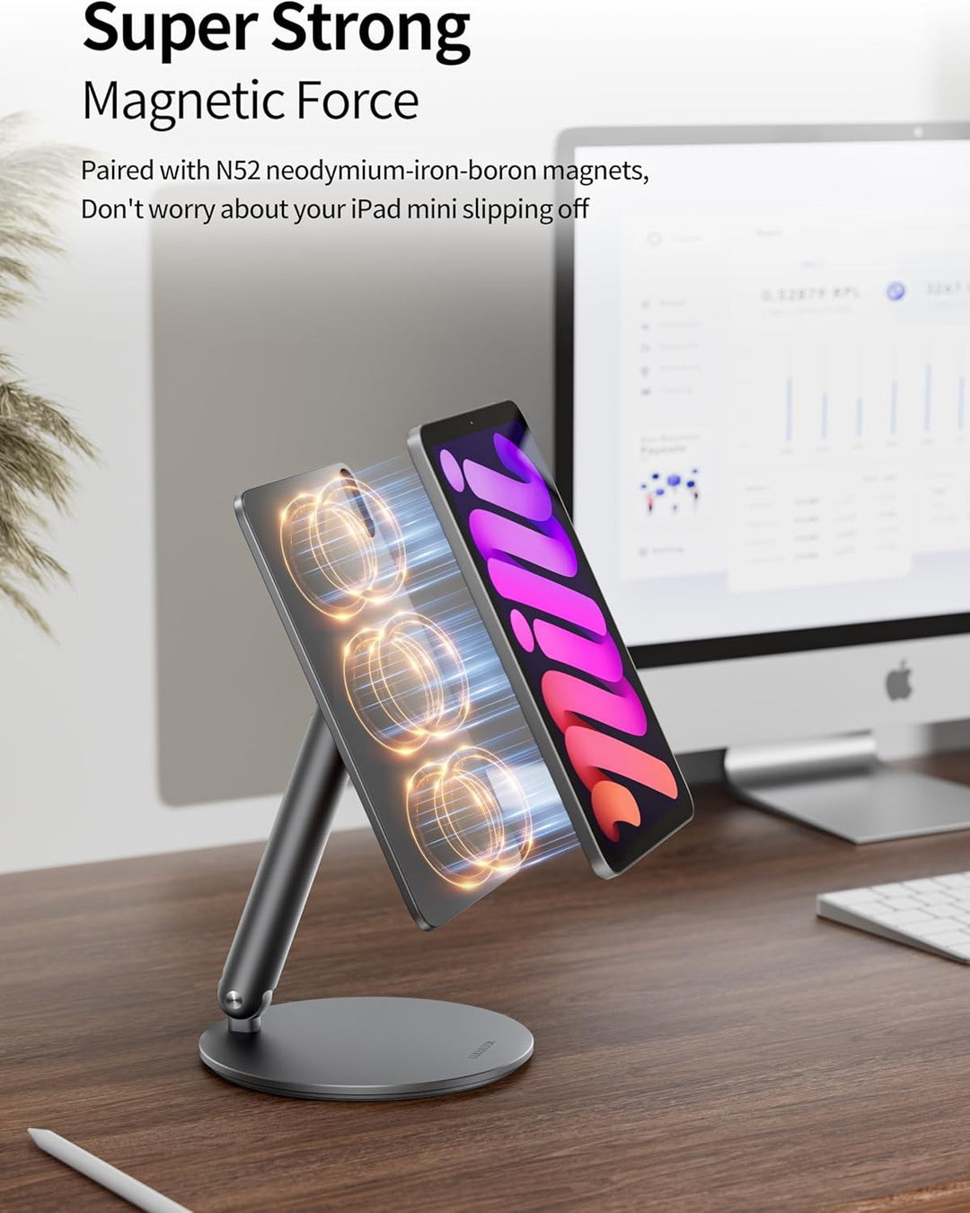 - 【360° Drehbare Basis】Unser iPad mini 7 magnetisch ständer unterstützt multi-winkel ansicht. Das innovative design von 360° drehbarem panel & 180° verstellbar ständer & 360° drehbarem basis. Die flexible einstellung des winkels und der höhe
