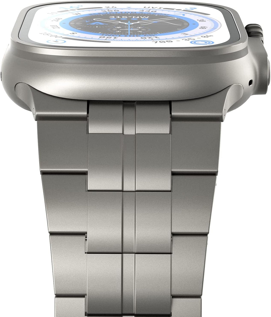 - ⌚【Titan Material】Dieses Apple Watch Ultra armband besteht aus einer hochwertigen Titan Grad 2 legierung. Die dichte der titanlegierung beträgt nur 60% der von edelstahl, es zeigt hohe festigkeit,gute steifigkeit und geringes gewicht,hypoallergen