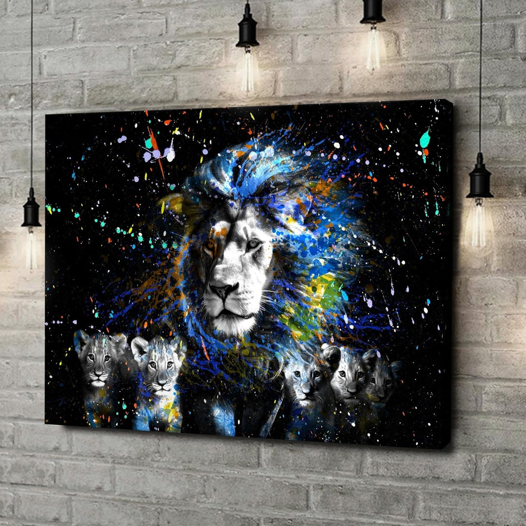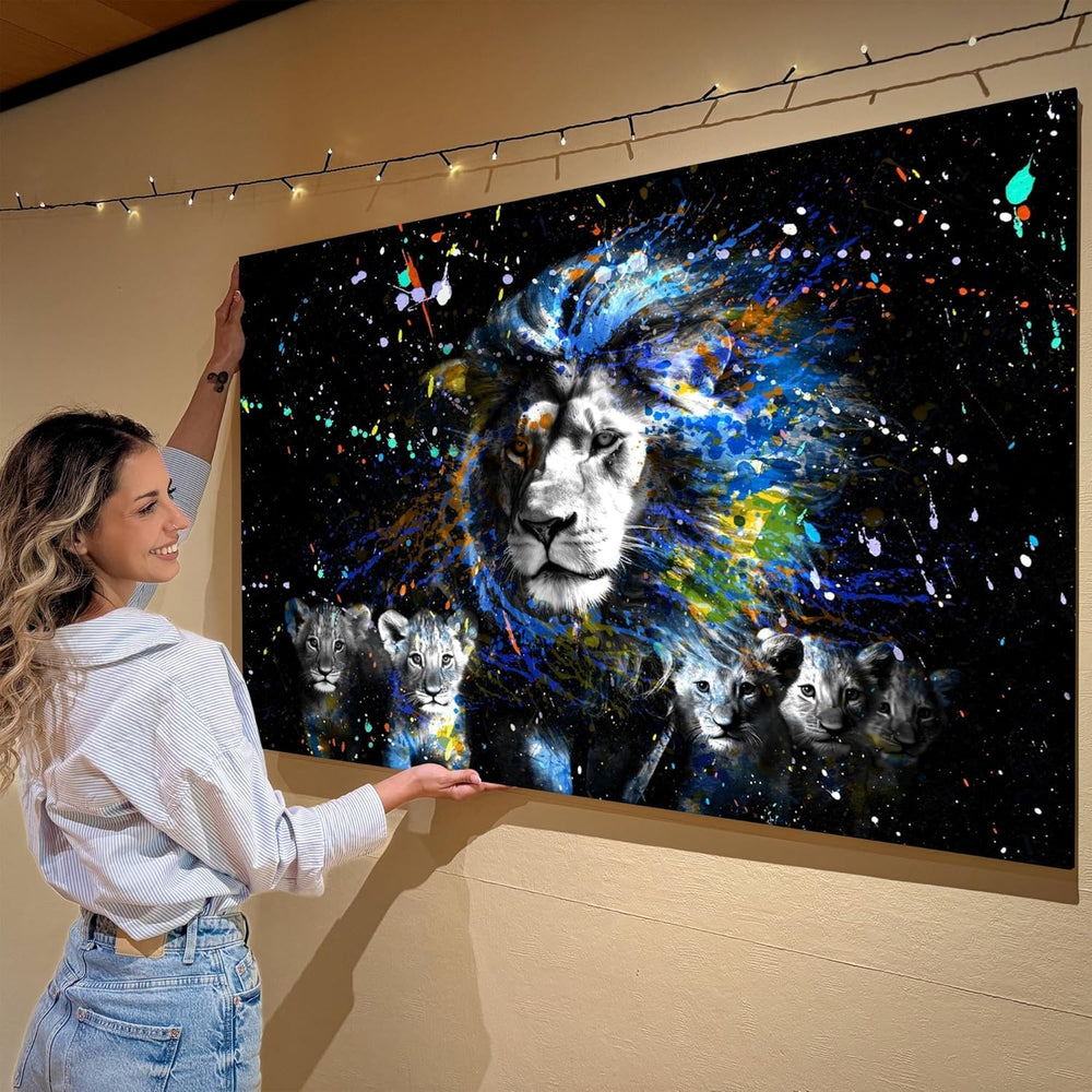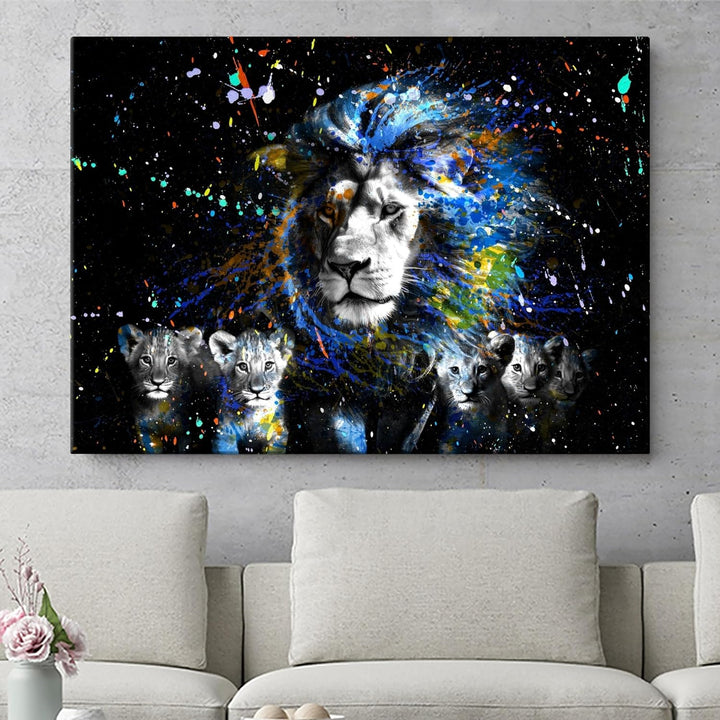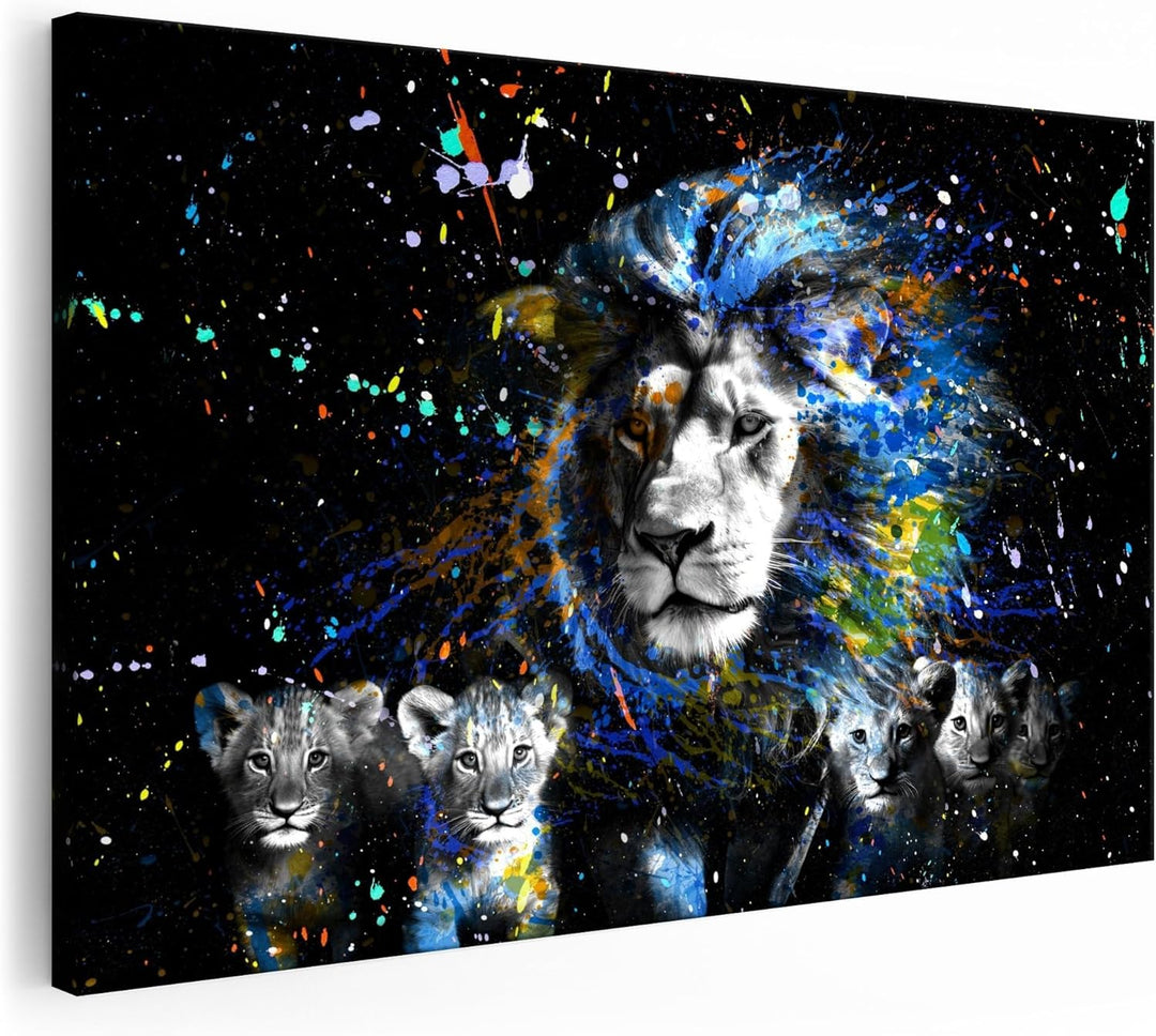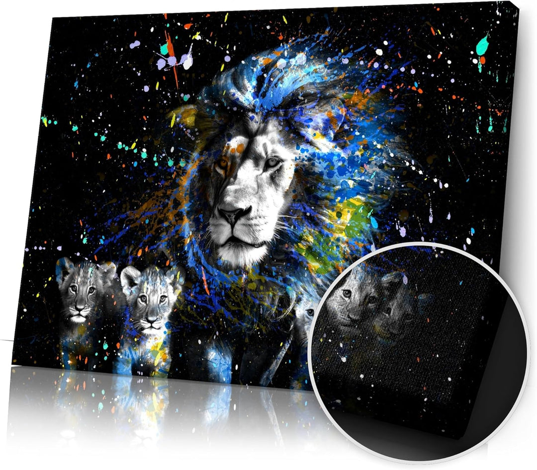 Artmazing | Löwenfamilie Leinwand | Pop Art Bilder | Bild Löwe | Leinwandbilder Wohnzimmer modern |