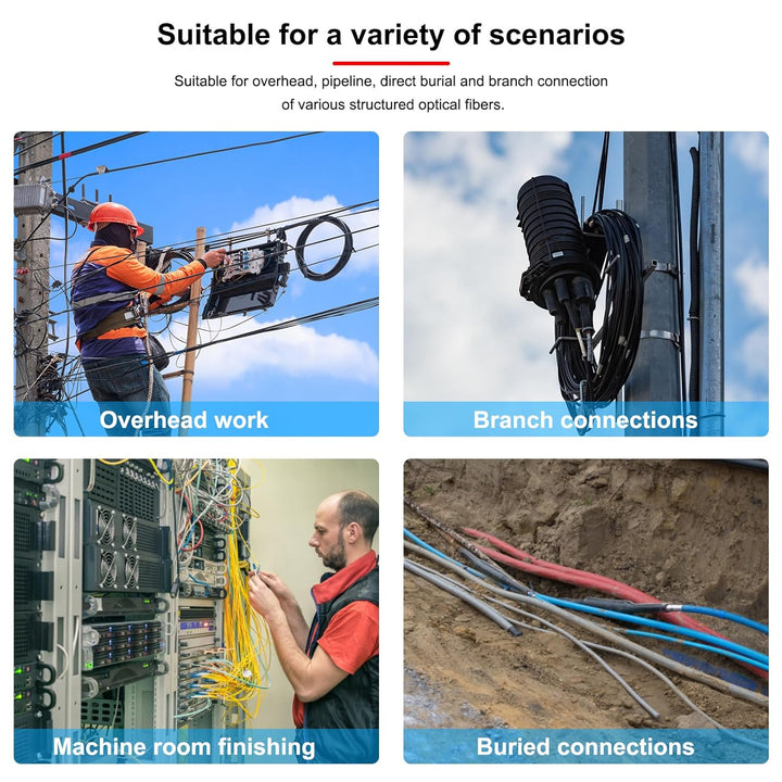 - Geeignet für Freileitungs-, Rohrleitungs-, Direktverlegungs- und Abzweigverbindungen von verschiedenen strukturierten Lichtwellenleitern.