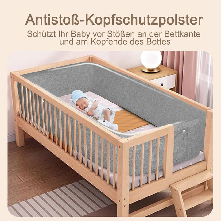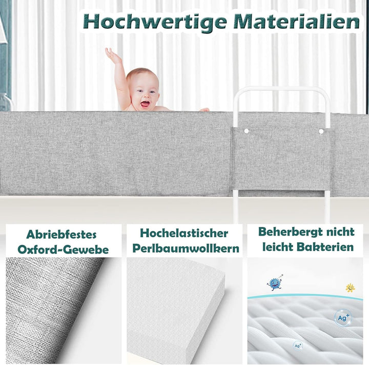 - Sicherheit und Komfort:Dieses Rausfallschutz Bett besteht aus hochwertigem Stahlrahmen und umweltfreundlicher EPE-Perlenbaumwolle, was eine stabile Struktur und hochwertige Unterstützung gewährleistet. Es verhindert nicht nur effektiv, dass das Baby