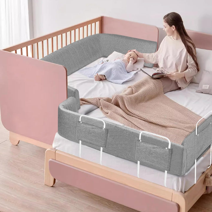 - Sicherheit und Komfort:Dieses Rausfallschutz Bett besteht aus hochwertigem Stahlrahmen und umweltfreundlicher EPE-Perlenbaumwolle, was eine stabile Struktur und hochwertige Unterstützung gewährleistet. Es verhindert nicht nur effektiv, dass das Baby