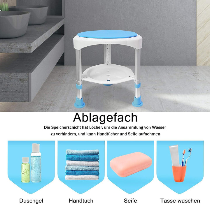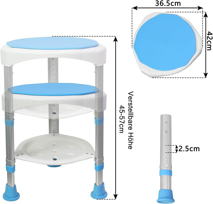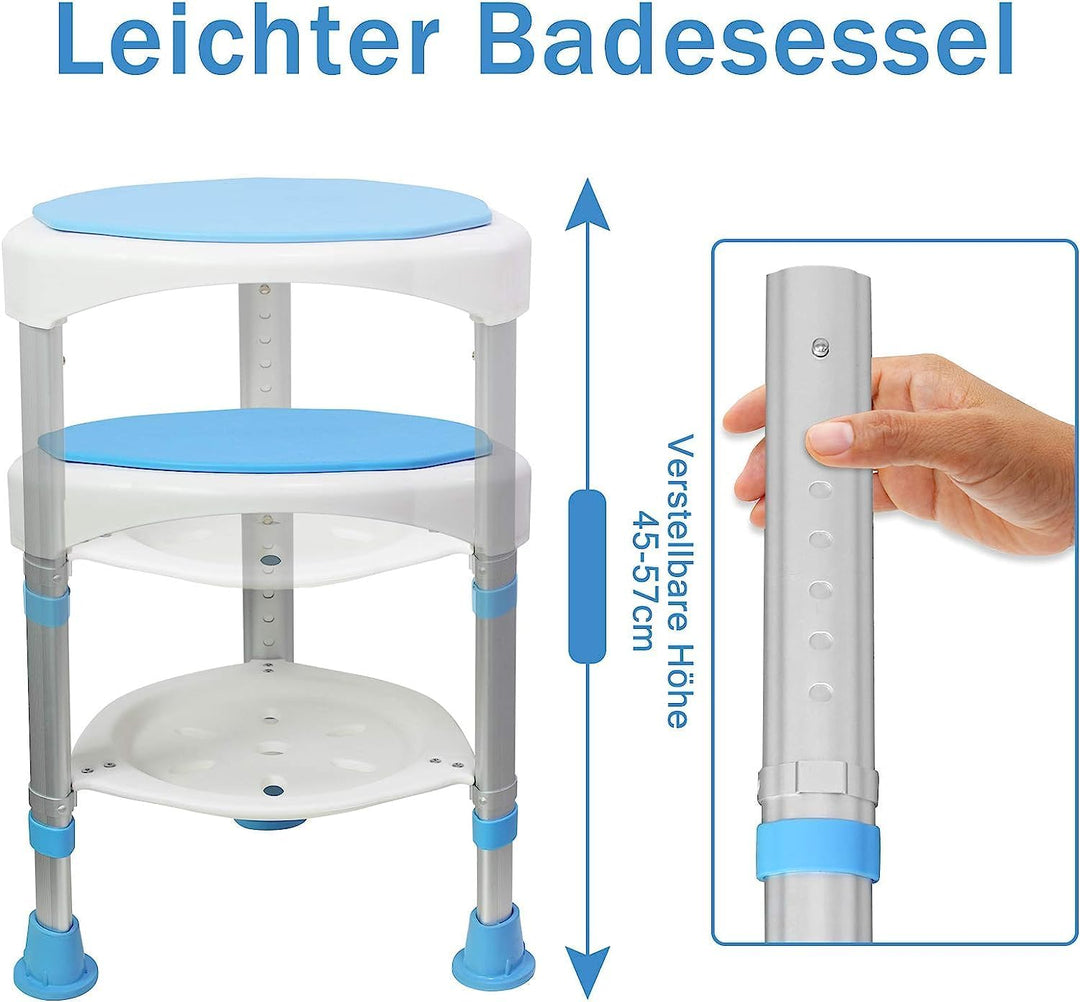 LZQ Duschhocker Duschstuhl Badhocker 360° Drehbar Badsitz und 45-57cm Höhenverstellbar Anti-Rutsch D