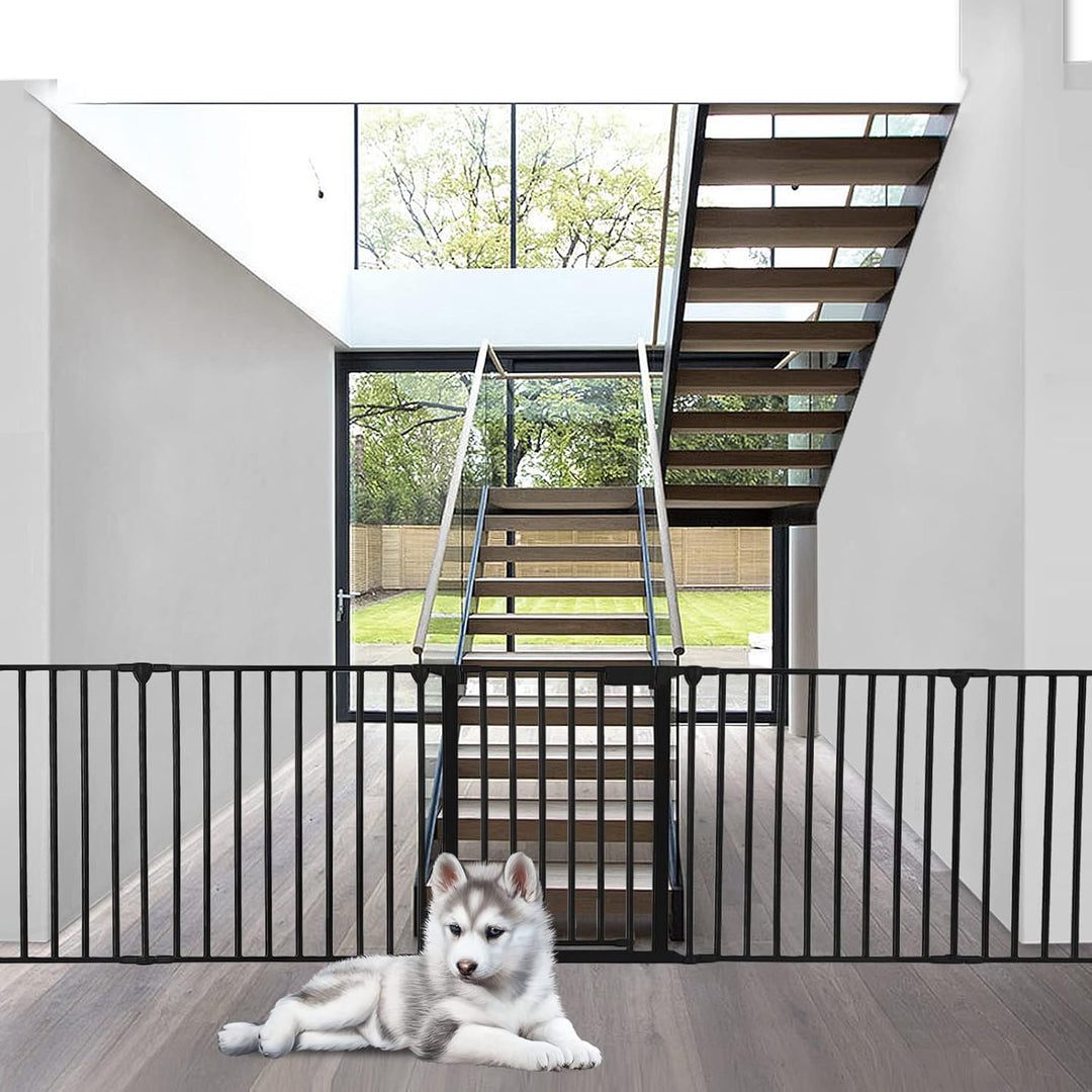• ✅【5 tlg. Türschutzgitter】Das Türschutzgitter besteht aus 5 Elementen (1 Torelement und 4 Seitenelemente). Jedes Element misst 75*60cm. Dank der hochwertigen Beschichtung und des hitzebeständigen Metallmaterials sind die Treppenschutzgitter sehr