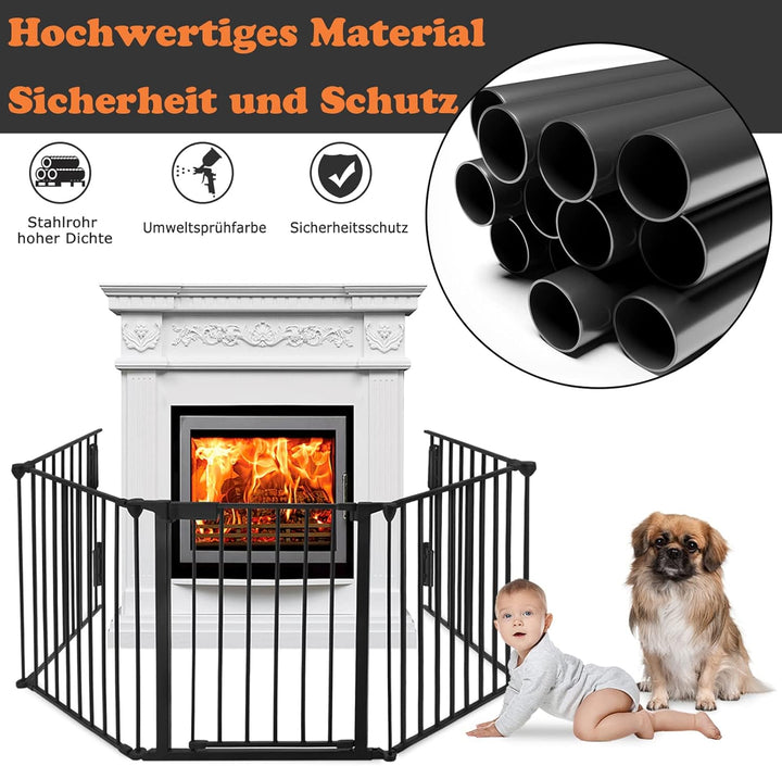LZQ Kaminschutzgitter mit Sicherheitstür Metall Ofenschutzgitter Gesamtlänge 300 cm, Kamingitter Kin