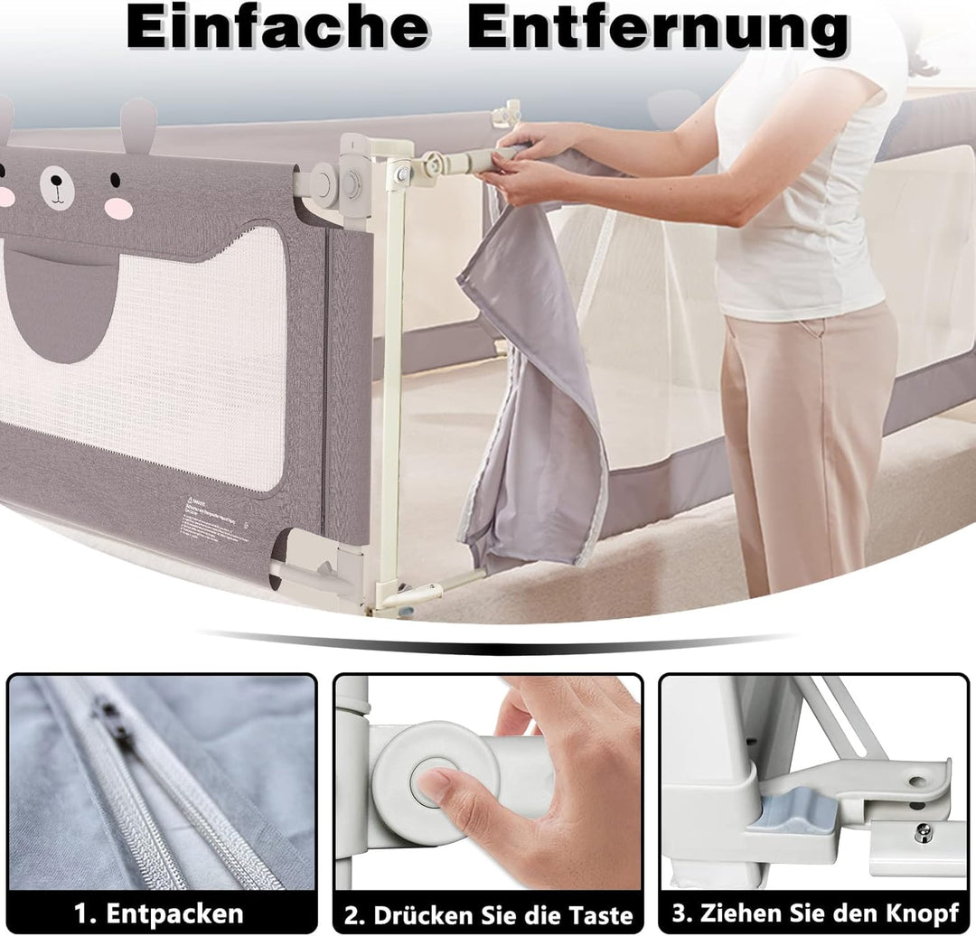 - Praktisch: Waschbar und wiederverwendbar.Und diese Bettschiene lässt sich leicht verstauen, wenn Sie sie nicht benutzen.