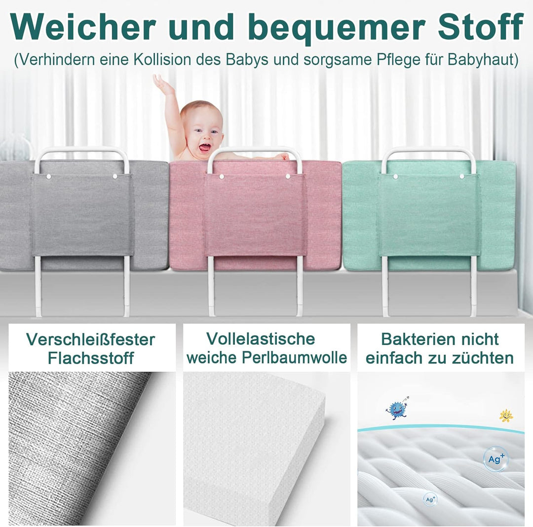 - 【Weicher und bequemer Stoff】Das Bettgeländer ist mit einem inneren Kern aus einem ganzen Stück umweltfreundlicher Perlenbaumwolle gefüllt, die keinen besonderen Geruch hat und die Eigenschaften von hoher Dichte, starker Elastizität, Weichheit und Komfort, atmungsaktiv und hautfreundlich hat.