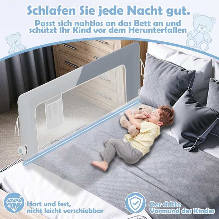 - SICHERER SCHLAF MIT RAUSFALLSCHUTZ: Unser Baby Bettgitter besteht aus umweltfreundlichem Material, ist leicht und wasserdicht. Das Design mit abgerundeten Ecken und hochdichtem Bettschutzgitter für Kinder schützt Ihr Baby vor unerwarteten Stössen. Das