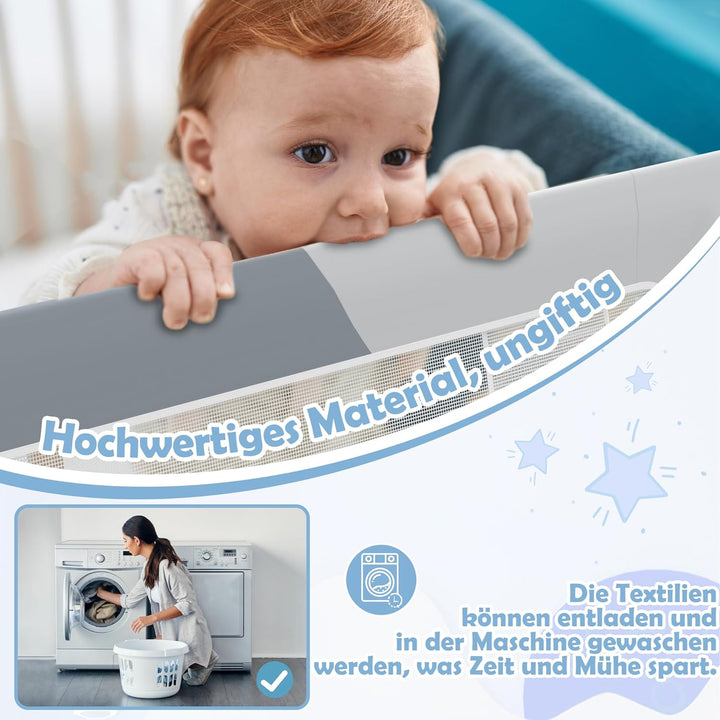- HYGIENISCH UND PRAKTISCH : Unsere Bettschutzgitter sind aus hochdichtem Oxford-Stoff gefertigt, sehr pflegeleicht, einfach mit einem Lappen abwischen, und der Stoffbezug kann leicht entfernt werden und kann in der Maschine gewaschen werden, ohne dass Sie