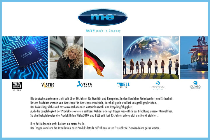 - VIELFÄLTIGES ZUBEHÖR – Durch das integrierte Funkmodul können sogar Funk-Türglocken aus der BELL- oder FG-Serie sowie CUVEO-Empfänger (z.B. Funk-Lichtschalter) von m-e in die Gegensprechanlage eingebunden werden.