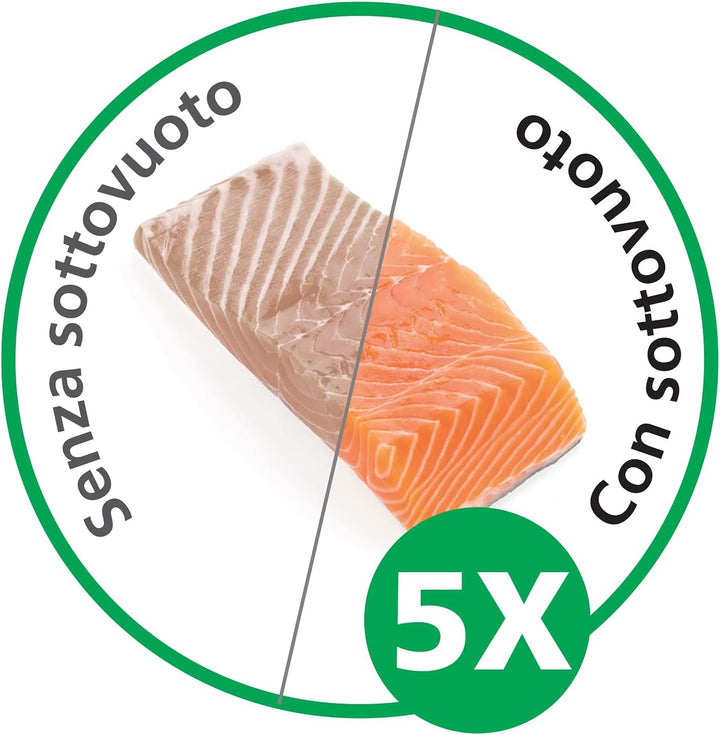 - Die "Pulse"-Funktion ermöglicht die Kontrolle der Luftabsaugung und fördert die Verpackung der Lebensmittel, auch die brüchigsten Speisen.