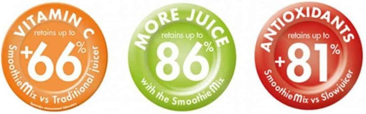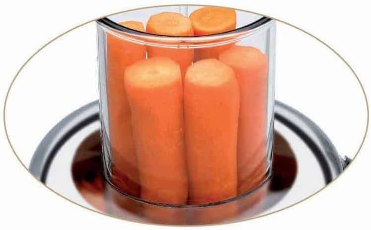 • mit extra Presse XL zum Kaltpressen von weichem oder gekochtem Obst und Gemüse für Saft, Nektar, Smoothies oder Coulis sowie mit XL-Saftfilter zur Gewinnung von kaltgepresstem Saft ausfestem Obst und Gemüse