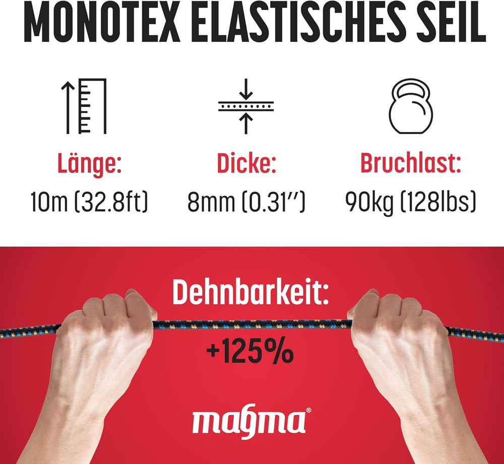 - ⛺ HÄLT DAUERHAFT STAND - Der Naturkautschuk-Latexkern in diesem Seil ist mit Monotex-Polyethylen umhüllt - einem wasserabweisenden Material, das auch UV- und Abriebschäden widersteht.