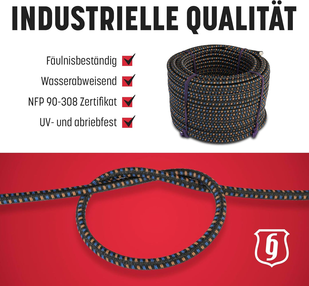 - ⛺ PASST UM NAHEZU ALLES - Unser Expander kann sich bis zu 115% über seine ursprüngliche Länge dehnen. Das bedeutet, dass unser 50-m-Seil bei maximaler Dehnung so lang wie der Big Ben hoch ist.