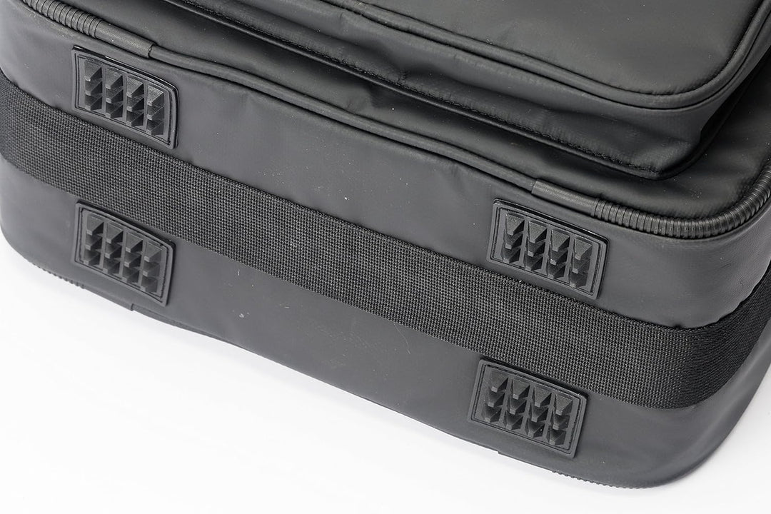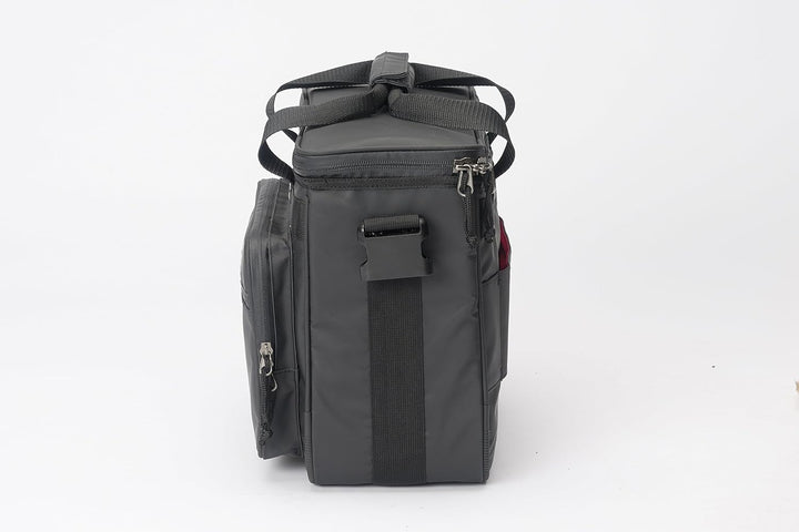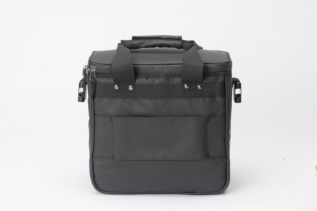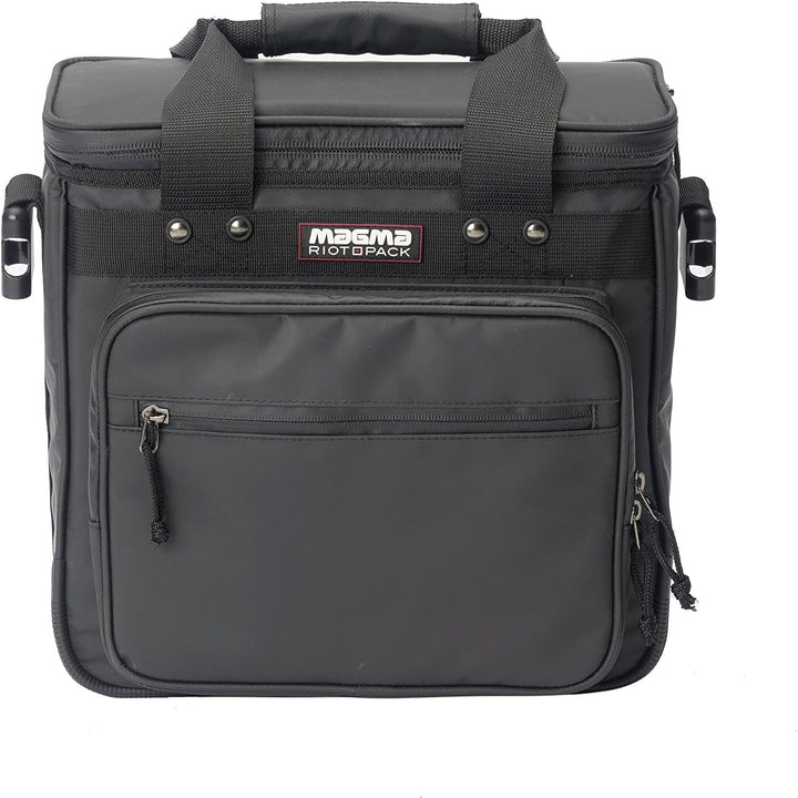 - Für bis zu 50 12-Zoll (30,48 cm) grosse Platten. Die Vordertasche bietet Platz für 45S, Kopfhörer und eine Nadelschachtel.