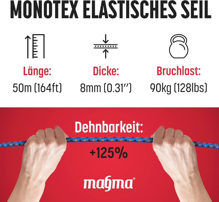 - ⛺ PASST UM NAHEZU ALLES - Unser Expander kann sich bis zu 115% über seine ursprüngliche Länge dehnen. Das bedeutet, dass unser 50-m-Seil bei maximaler Dehnung so lang wie der Big Ben hoch ist.