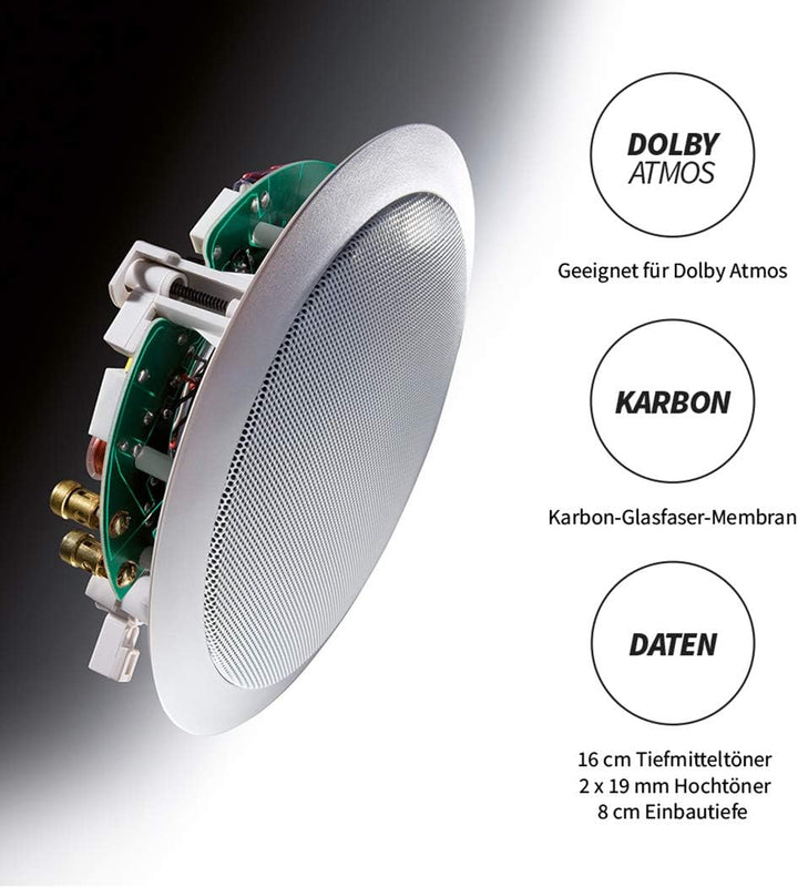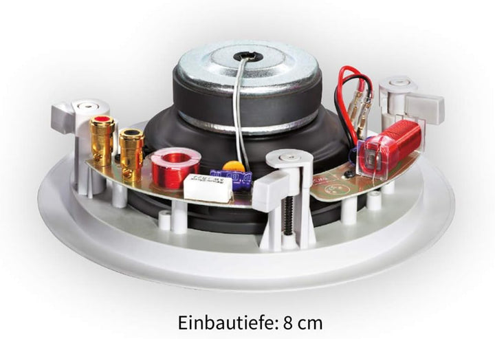 - Easy-Fit-Montage durch ein ausgeklügeltes Befestigungssystem mit Klemmsystem. Kabelaufnahme durch ein massives und vergoldetes Schraubterminal zur Verhinderung von Kontaktstörungen. Einbautiefe: 80 mm, Einbaudurchmesser 195 mm.