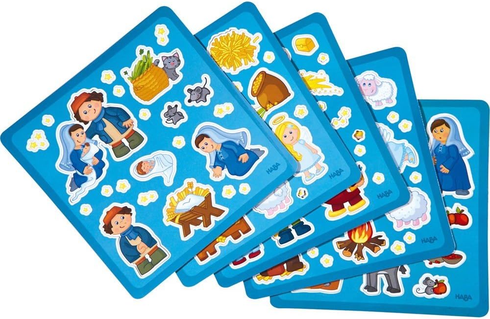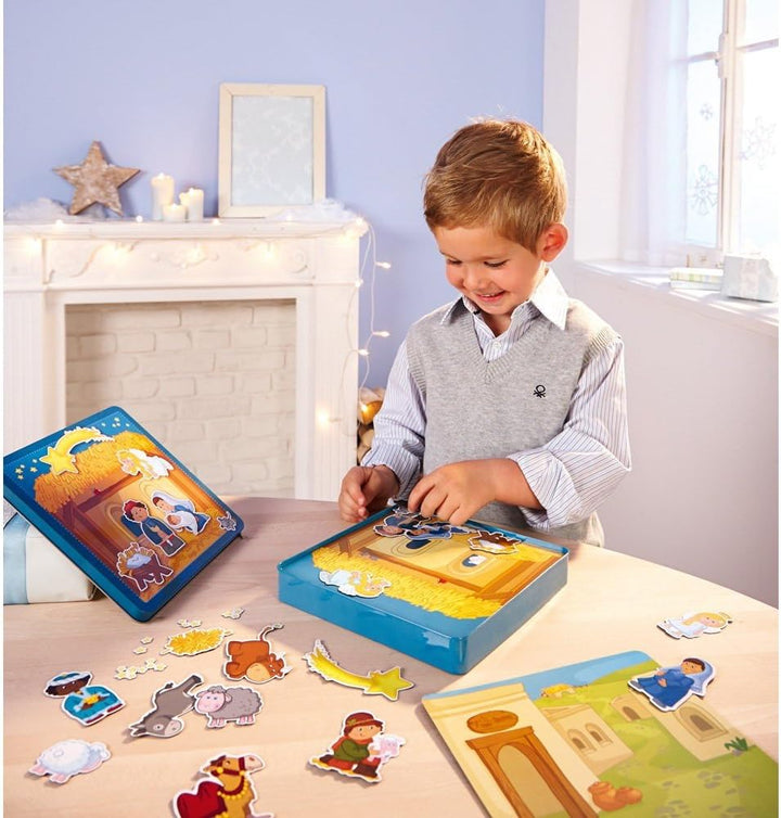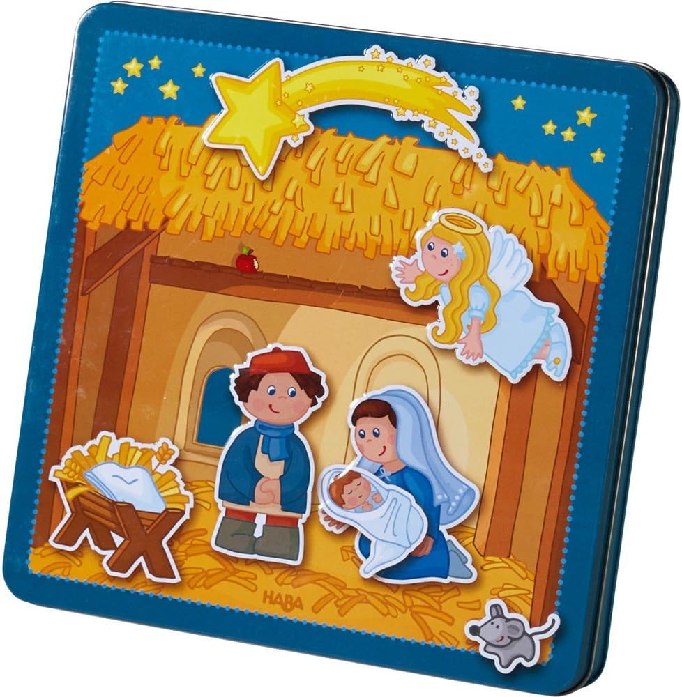 PRODUKTBESCHREIBUNGEN In dieser Box steckt maximaler Puzzle-Spass für alle, die die Weihnachtsgeschichte nachspielen wollen: Mit den unterschiedlichen Hintergrundbildern und den vielen verschiedenen Figuren, Tieren und Sternen können Kinder die Geschichte um Jesu Geburt immer wieder neu in Szene setzen. Material: Metall, Magnetfolie. Masse: Box 20,5 x 20,5 cm. abwechslungsreiches Magnetpuzzle rund um die Weihnachtsgeschichte regt die Kreativität an Inhalt: 1 Box, 4 Hintergrundbilder, 112 magnetische Puzzleteile. Altersempfehlung: Ab 3 Jahre Achtung.Kleine Teile. Erstickungsgefahr. Farbabweichungen und Änderung der Designs vorbehalten. Preis pro Stück. Neuerscheinung: 2014 Achtung! Verpackung ist kein Spielzeug. Verpackung vor dem Spielen entfernen. Anschrift des Herstellers aufbewahren.