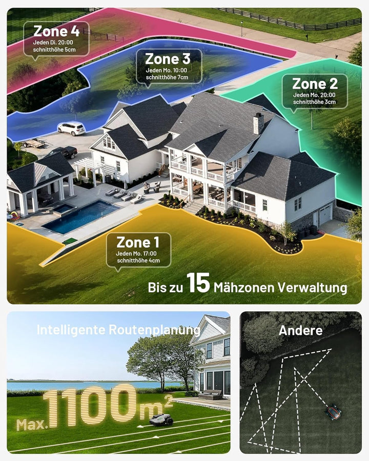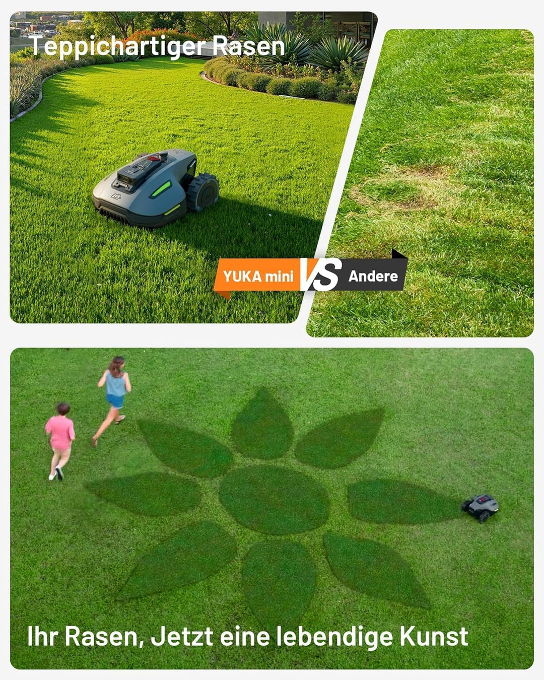 - Leichter, aber Intelligenter: Der YUKA mini passt sich Ihren Bedürfnissen an und verwaltet bis zu 15 Mähzonen mit benutzerdefinierten Aufgaben und Richtungen, während er automatisch Pfade zwischen ihnen erstellt - ohne manuelles Heben. Legen Sie