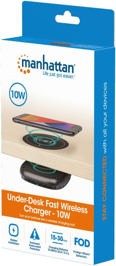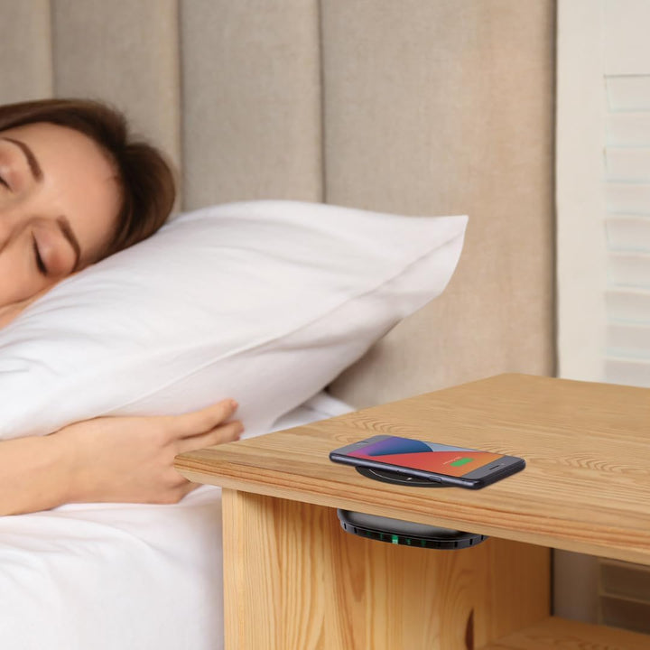 - Schnelles kabelloses Ladegerät unter dem Schreibtisch. Ermöglicht das Aufladen von Geräten ohne sperrige Ladegeräte auf Tischen, Schreibtischen, Nachttischen, Küchenregalen, Regalen und Bänken usw