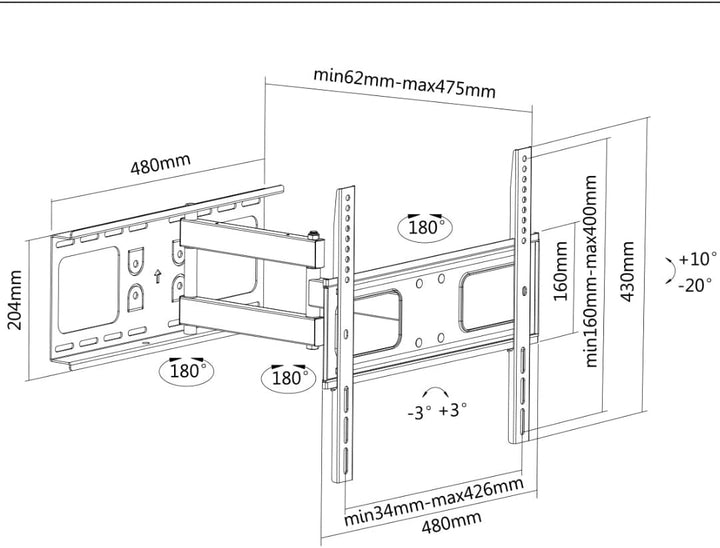 Variante: 32" bis 55" -20°-10° neigbar; 180° schwenkbar 50kg