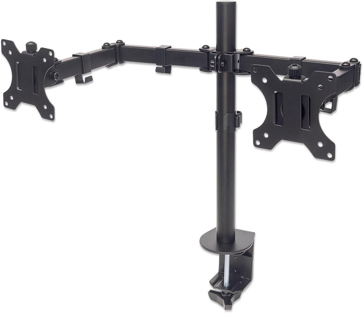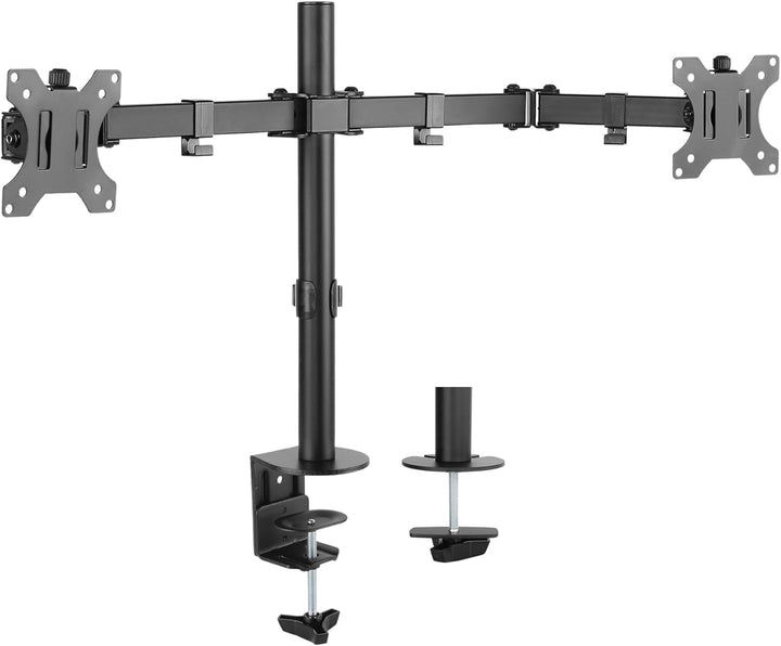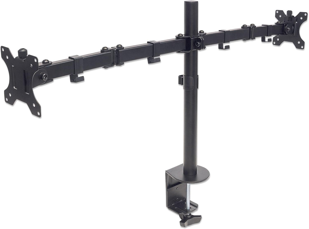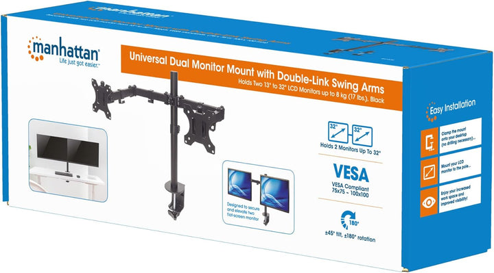 - Zur sicheren Anbringung von zwei Monitoren über dem Schreibtisch, schafft freie Arbeitsfläche und verringert Kabelgewirr
