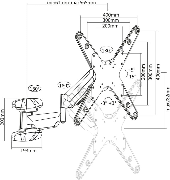 - Geeignet für ein Display von 21" bis 60" und bis zu 30 kg