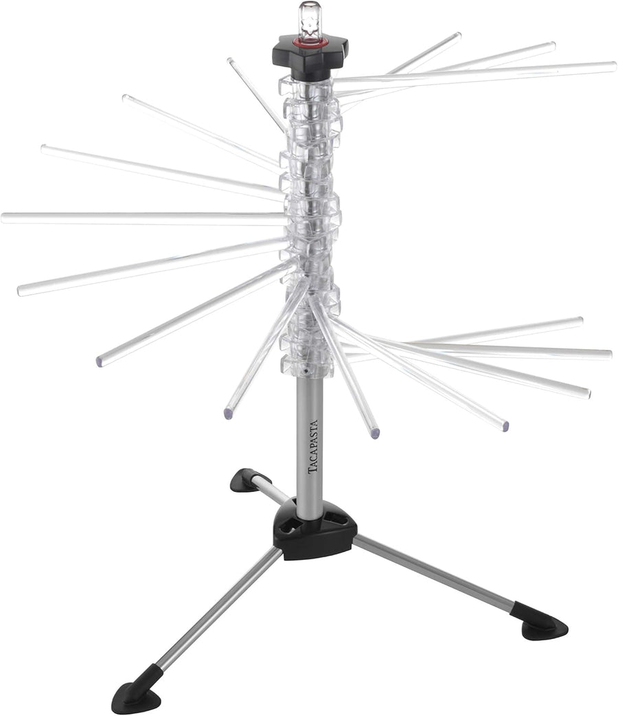 - Der vielseitige, in die mittlere Säule eingeführte Stab ermöglicht es, den frischen Nudelteig nach dem Schneiden ganz einfach von der Nudelmaschine abzunehmen und an den Armen von Tacapasta aufzuhängen