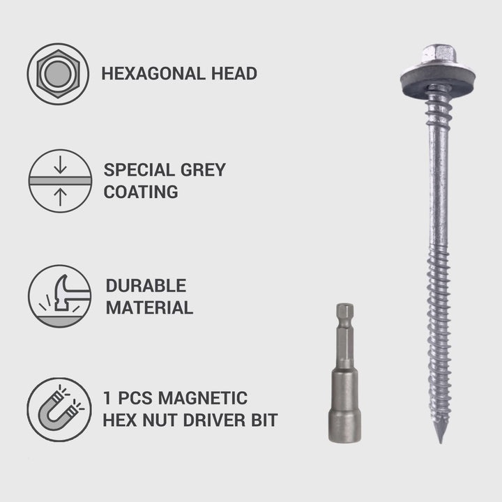 - ✔️ Kohlenstoffstahlschrauben sind stark, langlebig, zuverlässig und langlebig. Spezielle graue Beschichtung schützt vor Korrosion. Direktmontage in Beton und Holz Die Montage in Betonstruktur erfordert Vorbohrung