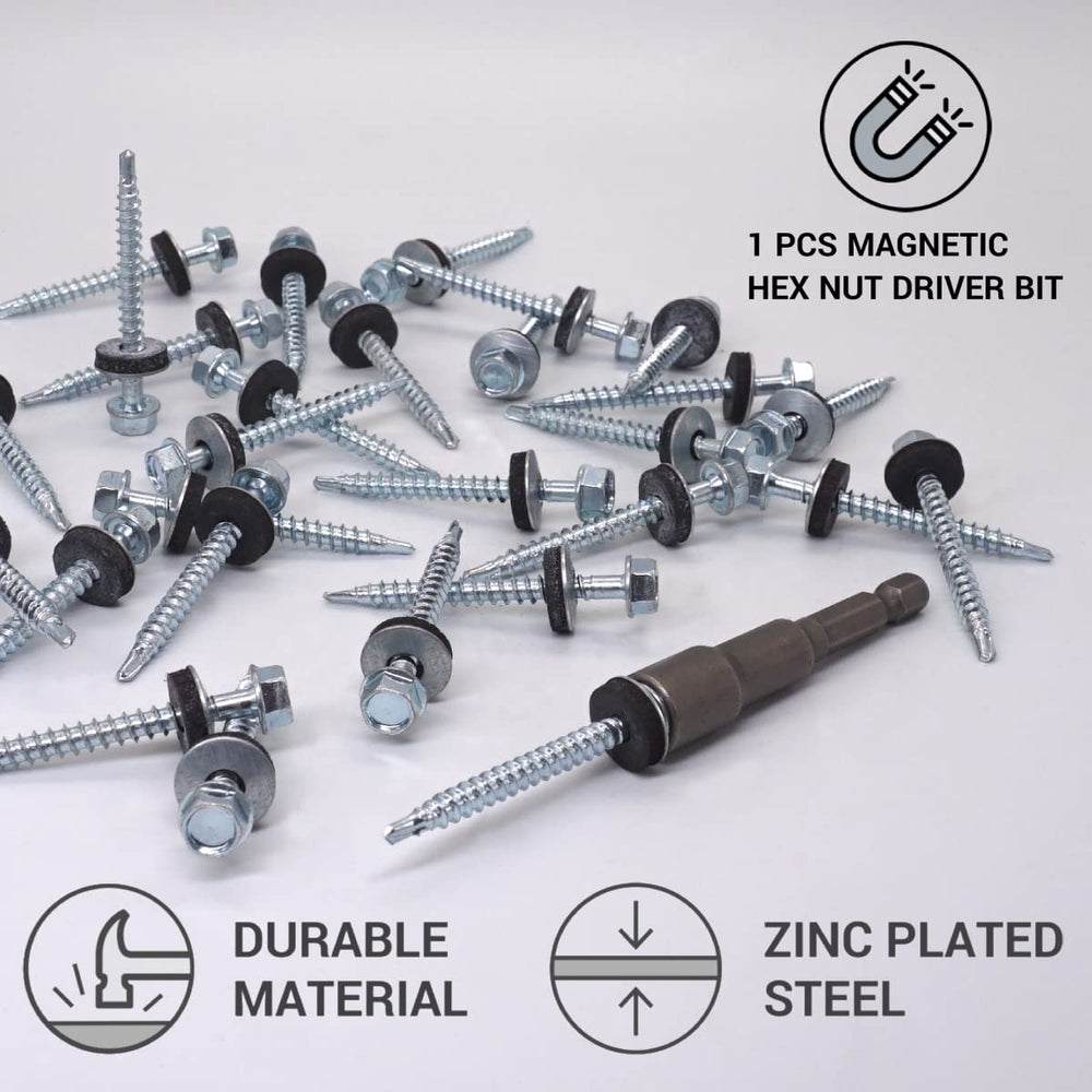 - Sechskantkopf. Diese Schrauben sind geeignet für: Blechbefestigung, Befestigung von Dachrinnen, Blechdachungen, Metallkonstruktionen usw. EPDM-Gummi- und Metall-Unterlegscheiben versiegeln und sichern die Verbindungen vor Korrosion und