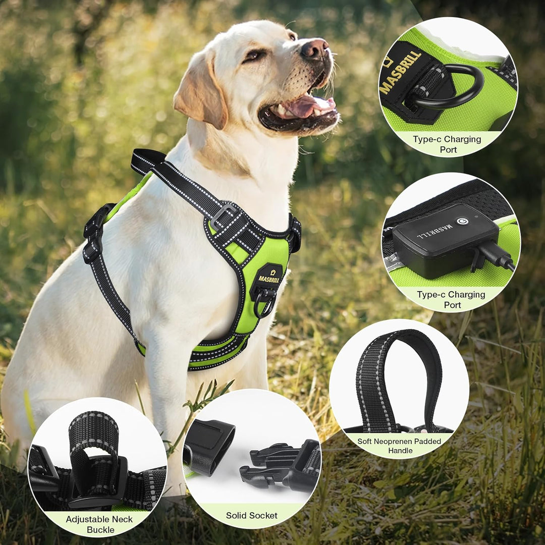 - 【Aufladbare LED Hundegeschirr】Unser beleuchtetes Hundegeschirr kann über USB-C aufgeladen werden. Keine Sorgen um den Batteriewechsel und keine zusätzlichen Kosten. Einfach in der Anwendung und umweltfreundlich. Das LED-Hundegeschirr funktioniert