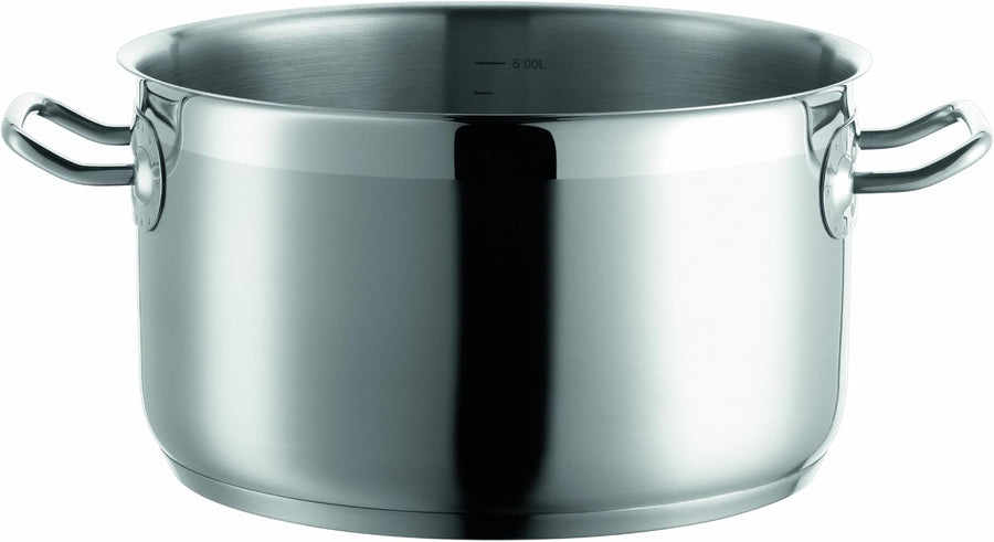 - Aus hochwertigem Edelstahl 18/10; Bodenstärke: 5mm; Wandstärke: 0,7mm; Verkapselter 5mm Sandwichboden mit optimaler Hitzeverteilung; hitzebeständige Griffe; mit praktischer Literskala.