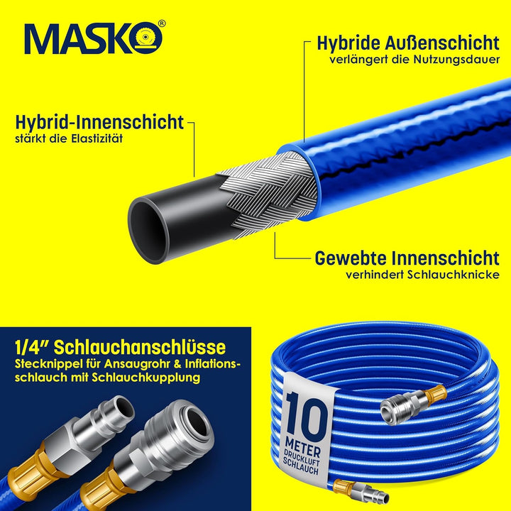 - ๐๐๐๐๐๐ ๐๐๐๐๐๐๐๐๐๐: Mit unseren Schlรคuchen mit einer Lรคnge von 10m - 30m mรผssen Sie nie wieder den Kompressor verschieben und haben genรผgend Reichweite um ideal arbeiten zu kรถnnen.