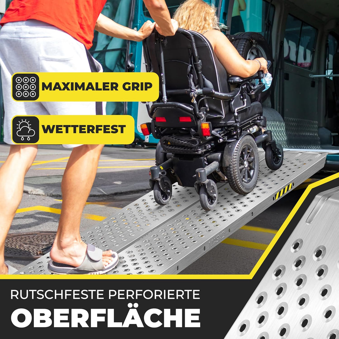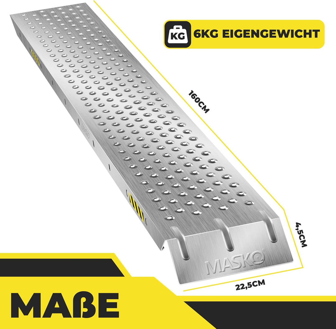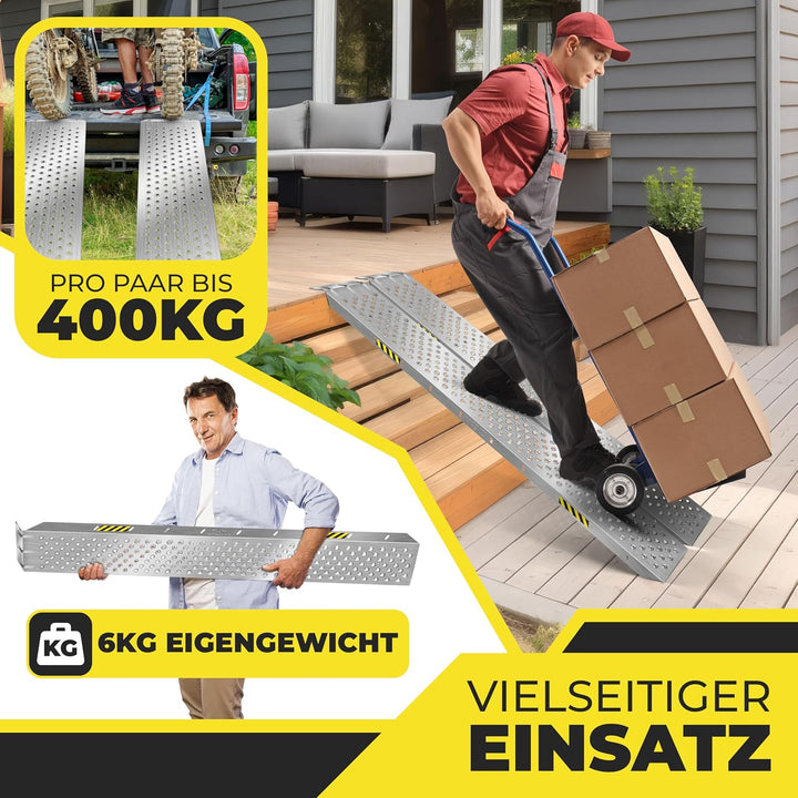 - ๐๐๐๐๐๐๐๐๐: Jede Schiene der Auffahrrampe aus dem Hause MASKO ist in der Lage, eine beeindruckende maximale Belastung von 200kg zu tragen. Das bedeutet, dass die Rampe insgesamt 400kg tragen kann. Dies ist besonders praktisch,