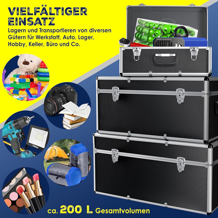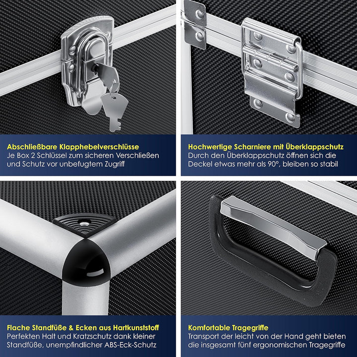- ๐๐๐๐ ๐๐๐๐๐๐๐ ๐๐๐๐๐๐๐๐๐ ๐ ๐: Die Aluminium Boxen sind mit komfortablen Tragegriffen ausgestattet, die den Transport erleichtern. Selbst wenn die Boxen voll beladen sind, kรถnnen Sie sie